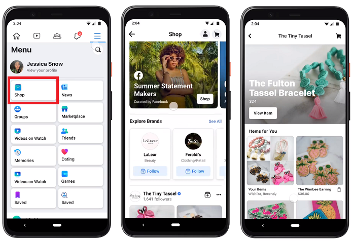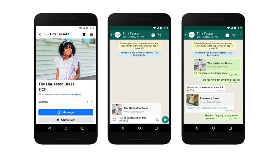 商店中新的消息传递功能按钮使人们可以轻松地通过Messenger、WhatsApp或Instagram Direct向企业消息传递。客户可以直接在聊天中查看产品,从而可以轻松地与亲朋好友共享产品,以便在购买前获得反馈。