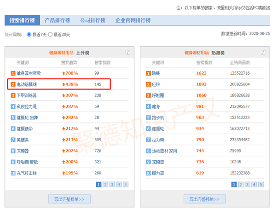 在国外疫情丝毫没有减缓的情况下,居家使用的健身器材需求也随之急剧飙升。似乎众多卖家也嗅到了这股迷人的金钱气息,开始纷纷布局,1688官网上筋膜枪最近7天的搜索指数也是飙涨到第2位,搜索趋势达到400%多!