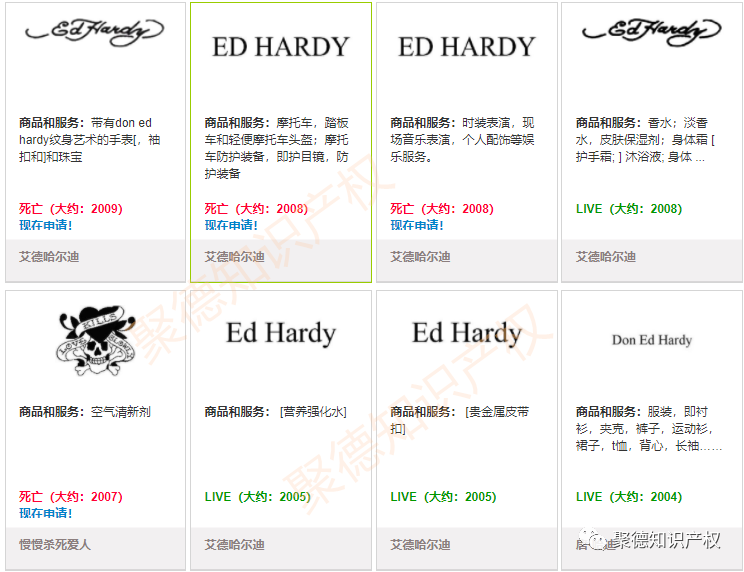 除了Ed Hardy纯文字商标之外,还有以下这些3类的化妆品图形商标: