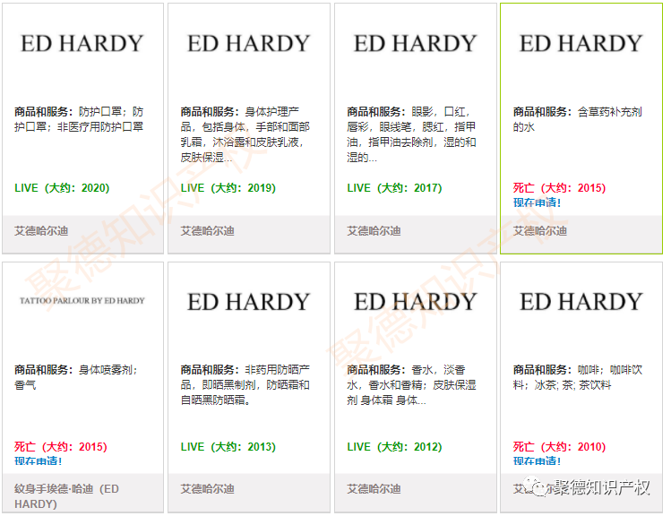 目前查看起诉的缘由是商标侵权,检索了Ed Hardy的美标注册情况,覆盖范围也比较广泛,化妆品、饰品、鞋服、口罩等产品,这些产品的链接标题、描述、或产品图片里如果含有Ed Hardy,不管美国哪个平台,尽快下架。