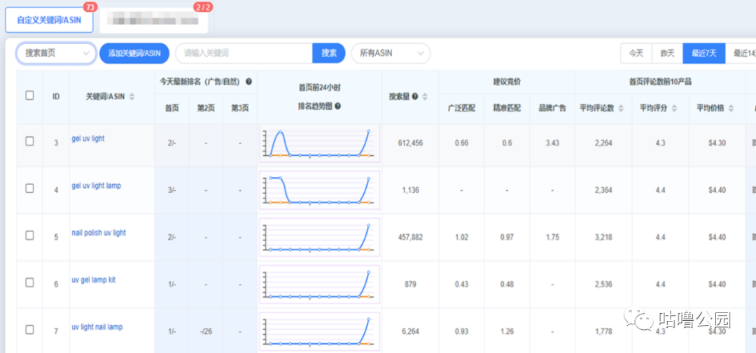 一开始我们添加的67个里面,不断观察排名的数据,同时继续在广告报表里面发现更多更有的词添加到自定义的关键词排名监测当中,为接下来到货后快速打关键词引入排名做准备。