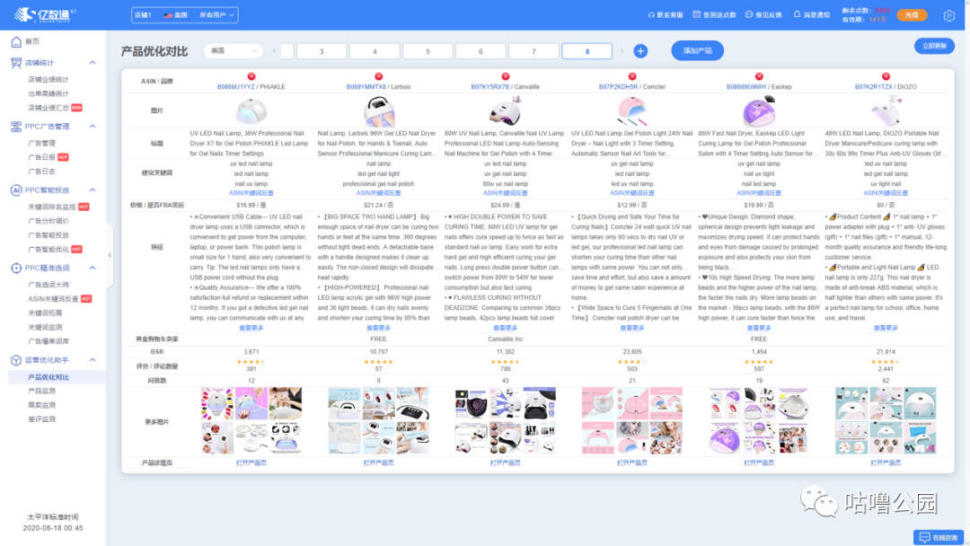 初始竞价只是测试竞价,我们会每半小时提价0.2左右直到能稳住关键词在首页顶部的排名,而且不同关键词会看周围竞品的情况,选择卡在不同位置,如led uv nail lamp, 我们发现在前面与其他竞争对手比对,我们的核心优势不明显,因此就选择了卡在首页中部的位置。