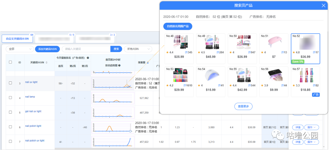 我们一般挑选监控的词是包含核心大词、搜索量适中、而且竞品在该词上是有广告排名的词,这些词都是极有可能会放在手动广告上打造的词,所以我们会先监控这些关键词在自动广告上是否有排名,再决定是否要打手动广告。同时自动广告中跑出的出单词我们也会不断监控其排名和搜索量。