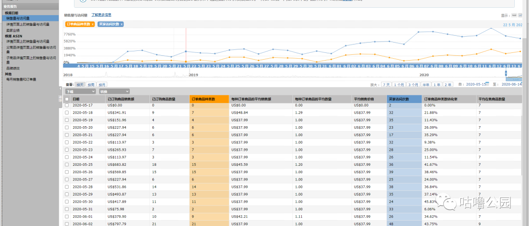 订单一下子变成了6单,这里明显出现了问题,如果一个产品的曝光量一下子变得特别低,或者订单一下子下滑很多,那就表明listing一定是出现了问题。所以在精细化的管理上面显得格外重要,或者用工具进行每天的重点产品监控也特别重要。很多人喜欢开了广告就过很长一段时间再来看,觉得要跑很长一段时间之后再来看数据,再进行分析,中间发生什么问题了都不清楚。