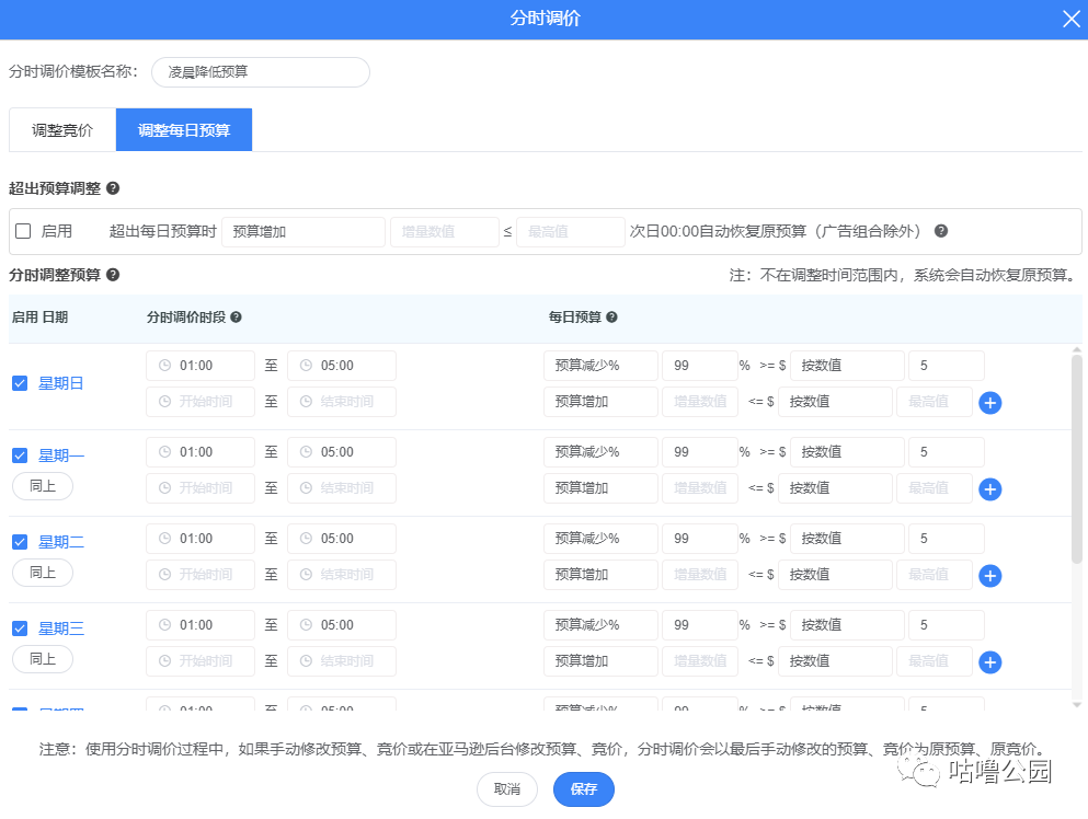在太平洋时间1-5点出单少,降低99%的广告预算。最低预算不低于5