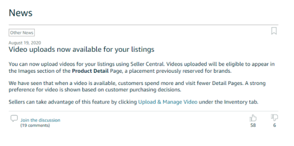 发货起始国为英国; 发货目的地为德国,波兰或捷克的亚马逊FBA仓库; 2020年8月11日至2020年9月4日在卖家中心创建的货件; 2020年8月11日至2020年9月18日只能能在德国,波兰或捷克的亚马逊FBA仓库收到货物; 仅限小包裹运输(托盘不符合要求); 承运人为UPS合作伙伴亚马逊合作承运人计划; 亚马逊合作承运人计划(PCP)旨在以及其优惠的价格为卖家将小包裹运送到亚马逊在欧洲的运营中心。卖家可以直接在Seller Central估算运费,付款并跟踪PCP发货。 1、处理时效快 亚马逊合作承运人计划以亚马逊丰富的承运商经验为载体,卖家开在运营中心快速处理订单,从而更快的为顾客提供库存。 2、运费成本低 从英国发货到亚马逊在欧洲的运营中心可以进行打折减少运输成本 3、每单位£2,000保额 根据FBA政策,对于PCP承运人,亚马逊承担每单位高达2,000英镑的库存损失或损坏的责任 4、付款更容易,知名度更高 卖家可从Seller Central估算费率,付款并跟踪发货 5、无需注册,约束少 无需注册,在约束少的情况下,按批次使用PCP 亚马逊后台视频功能全面开放!