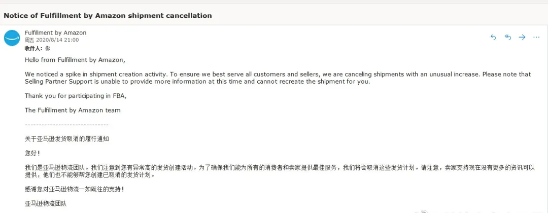 但也并不是所有卖家都这么幸运。有位家居类卖家坦言,自己超额强建了2000多个货件,都已经发货了,结果被亚马逊取消,现在整柜货物全部漂在海上,入不了仓库,就连开case也已经没办法恢复了。