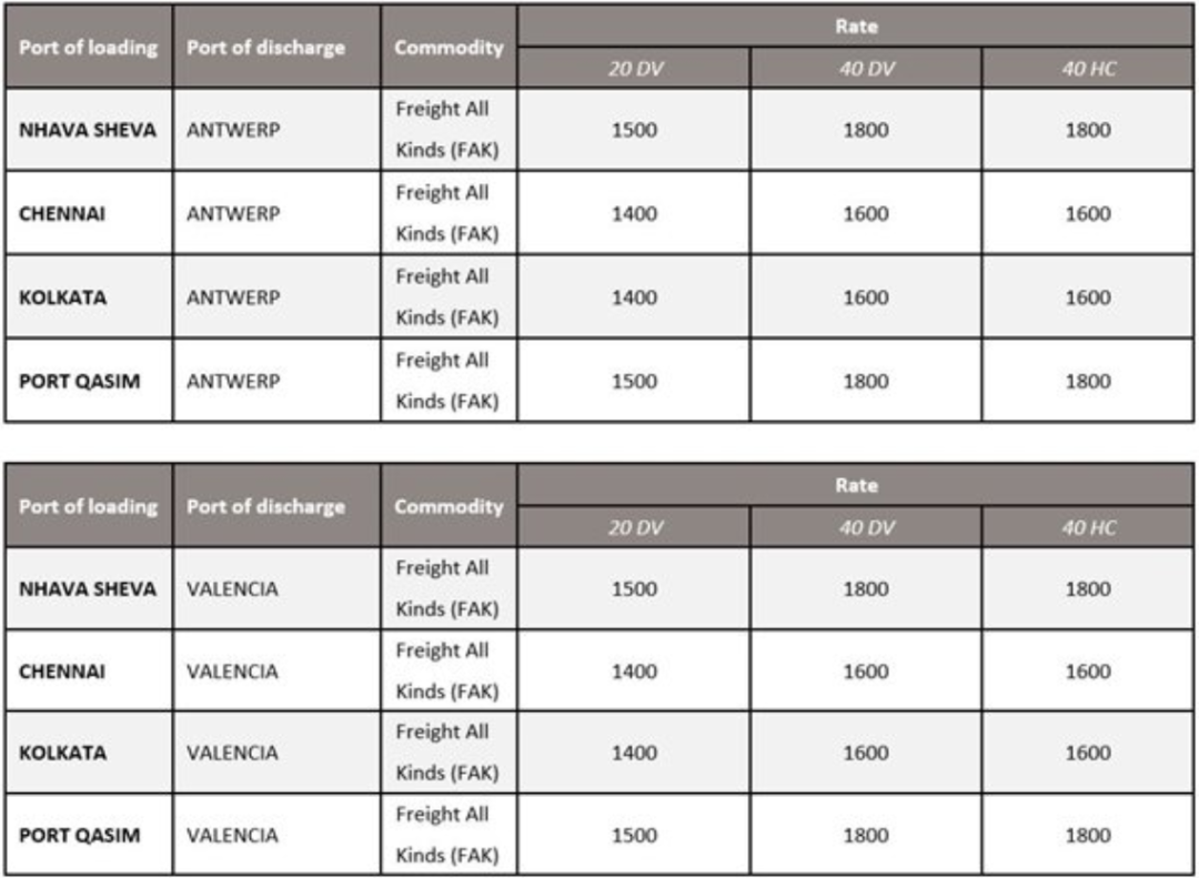 具体费率:USD 500/20' | USD 1,000 / 40'
