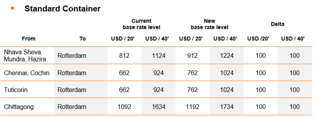 此外,从9月1日起,从东亚到南美东海岸,以及从9月15日起至美国和加拿大的汉堡航线也将实行提价。