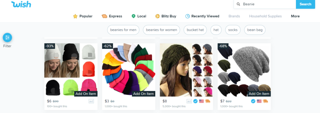 美国是Wish平台最大的市场,相信你也基本猜到美国是Beanie帽最大的市场了,但是美国的购买量有多大呢?