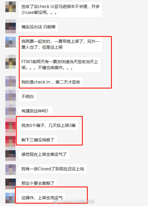 卖家A:空运7.30查追踪号显示到货的,至今亚马逊没发签收邮件,没有预售没有上架。 卖家B:IND9,7.30和7.31分别到了两票UPS红单,现在没有一票可以check in,漫长的等待中。请问有挑战我的小伙伴吗。 卖家C:28号check in 入库3箱,剩下12箱到现在动都不动。 卖家D:我8月8日上架的,发了1000,才给我上架37个,无敌吐槽,上架这么点啥都搞不了!