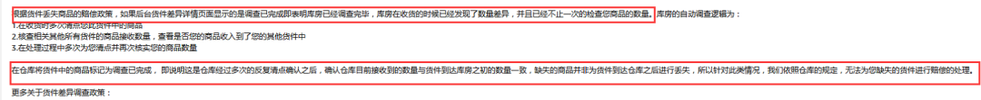对于此种情况,有卖家解释如果无法点击已完成库存状态中的“查看货件差异和货件差异查询数量”就无法进行索赔,有可能是货物损坏而不是丢失。
