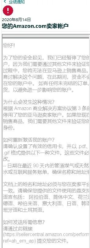 既然大家选择亚马逊这个平台,不管它警告信、封号还是二审,大家也只能认命,尽量适应平台的规则,把二审所需要的材料都准备齐全,争取快速安全地通过二审!