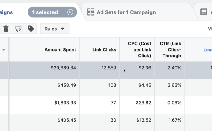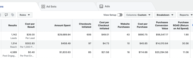 以上三个自定义报告也许还不能满足你特定的业务需求,另一方面,使用自定义报告跟踪Facebook广告效果的方法也不是唯一的。建议从熟悉这些报告中的不同指标开始,随时根据业务需求更新你的报告,以便可以利用这些数据做出更好的广告购买决策。