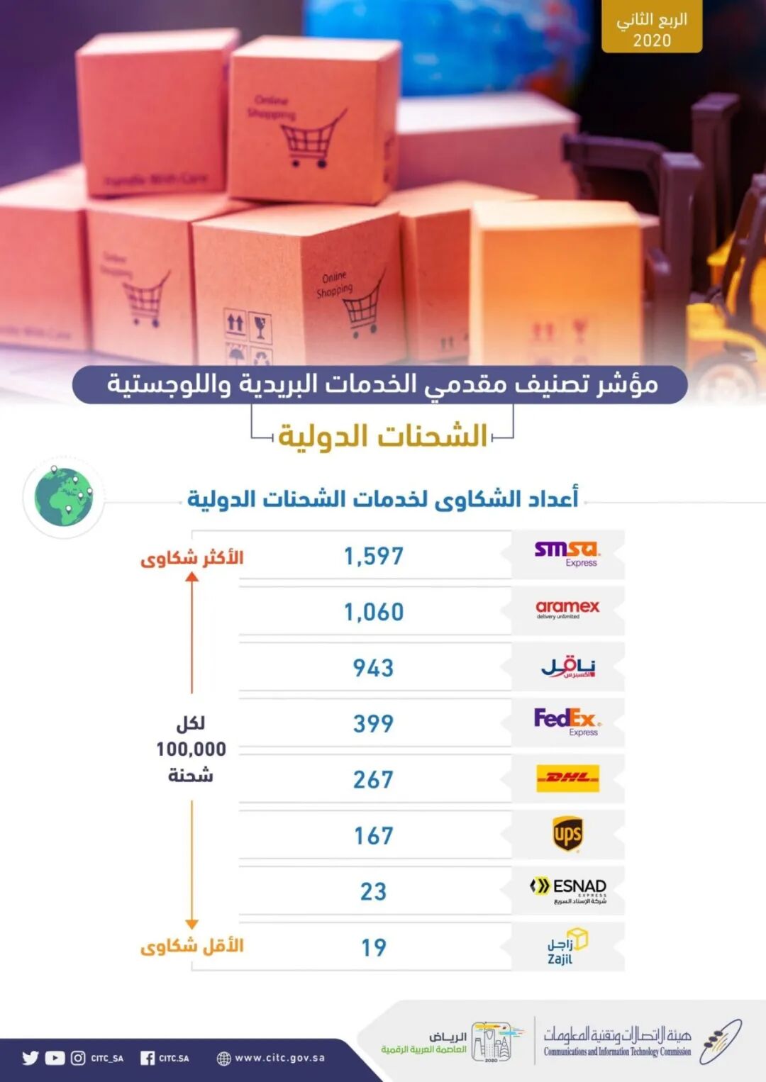 根据2020年第二季度的投诉结果:沙特通信和信息技术委员会(CITC)根据投诉情况公布了两个排行榜,分别是国际货运与沙特国内运输的快递公司被投诉的前十名。 在关于斋月期间里,关于沙特电商物流传出了许多负面信息,沙特通信和信息技术委员会(CITC)发布了2020年第二季度向主管部门投诉的邮政和物流服务商排行榜。这相当于说已经发布了每个服务提供商的客户服务水平的官方评估。 该排行榜的数据显示,在服务提供商未解决客户的需求之后,客户向当局提出的投诉总数为72,096起,总投诉里有69%与国际运输有关。 SMSA Express在国际货运类别中,作为被投诉最多的公司,投诉为1,597件,其次是Aramex获得1,060件投诉。 Zajil是国际货运类别中表现最好的公司。每十万次发货中只有19宗投诉,我们之前提到的Esnad以23宗投诉排名第二(良好)。 关于沙特国内货物运输类别:该指数显示,纳克尔发布了投诉最多的公司名单,Naqel Express有1559件投诉,其次是FedEx联邦快递有693件投诉和Aramex公司529件投诉。每十万次发货中就有这笔,而UPS则是国内货运类别中最好的公司,有44件投诉。 管理局澄清说,升级到它的大多数投诉都与在约定的时间内延迟交付货物有关。 沙特邮政是一家在沙特中提供送货服务的持牌公司,但该报告未提及沙特邮政的服务水平。 这是第二季度报告,因此该报告中没有包括SAEE,Fetchr,Jones Transport,Aymakan,Almajdouie Logistics和Mkhdoom等在2020年6月正式获得沙特派送和清关许可证的多家公司。 而这个排行也是指的是国际和国内交付的服务水平,但该报告并未从国际和国内服务的角度解释它们的区别。 如果说电子商务平台自己进行头程运输,而物流公司只进行最后一公里派送,那么从CITC的角度来看,这是国际运输还是国内运输? 该报告显示了服务商的最佳和最差服务水平,但这仍然不是衡量沙特中每个物流服务商的水平的准确标准,因为可能排行在榜首的除了收获的投诉多,但是他们也是被多个电商平台选择的合作伙伴。 简而言之,要在竞争激烈的环境中为沙特消费者提供服务并不容易。 文章译者:中东跨境电商汇 资料来自thelowdown 欢迎转载,请注明出处
