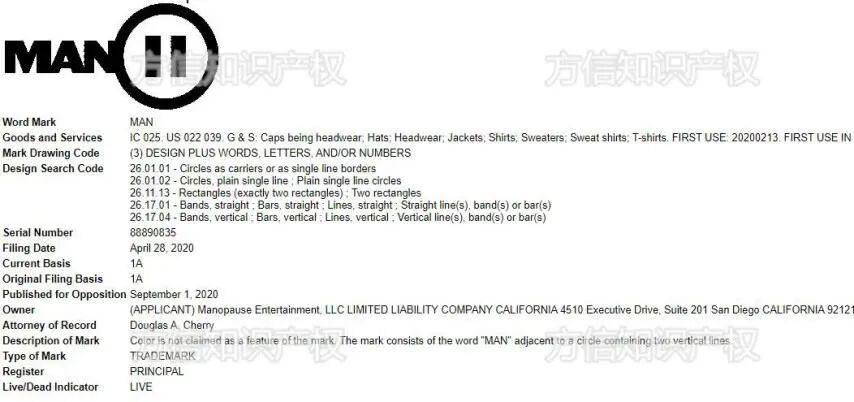 MAN 设计的特点就是中间断开,这个商标在2018年9月25号注册成功。草书版的 MAN 商标目前处于审查中 - 尚未注册。