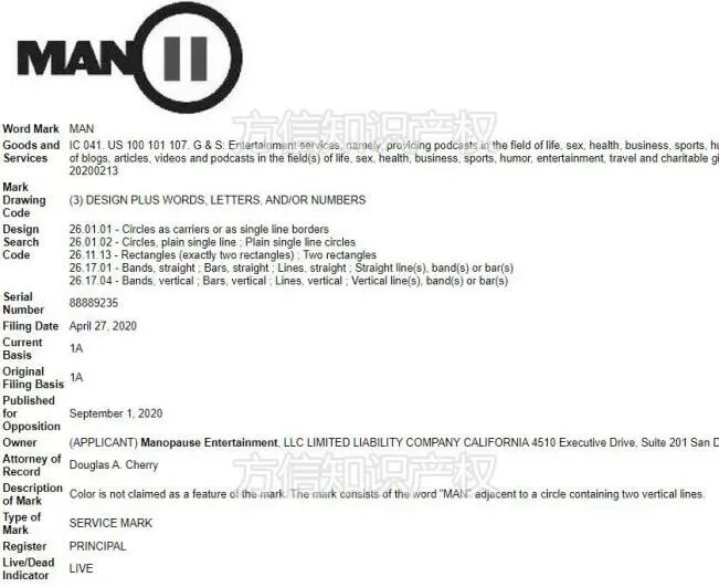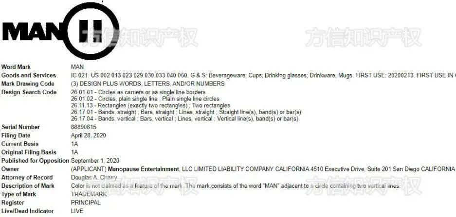 还有一个 MAN 商标需要提一下,那就是 MANOPAUSE 这个男性俱乐部,他们主要经营做健康医疗和旅游相关的服务。但 MAN 商标注册了 21 类和 25 类。因此需要了解下他们的 LOGO ,避免错误使用导致侵权!