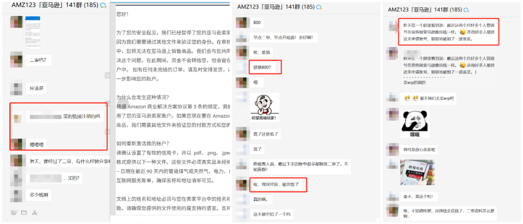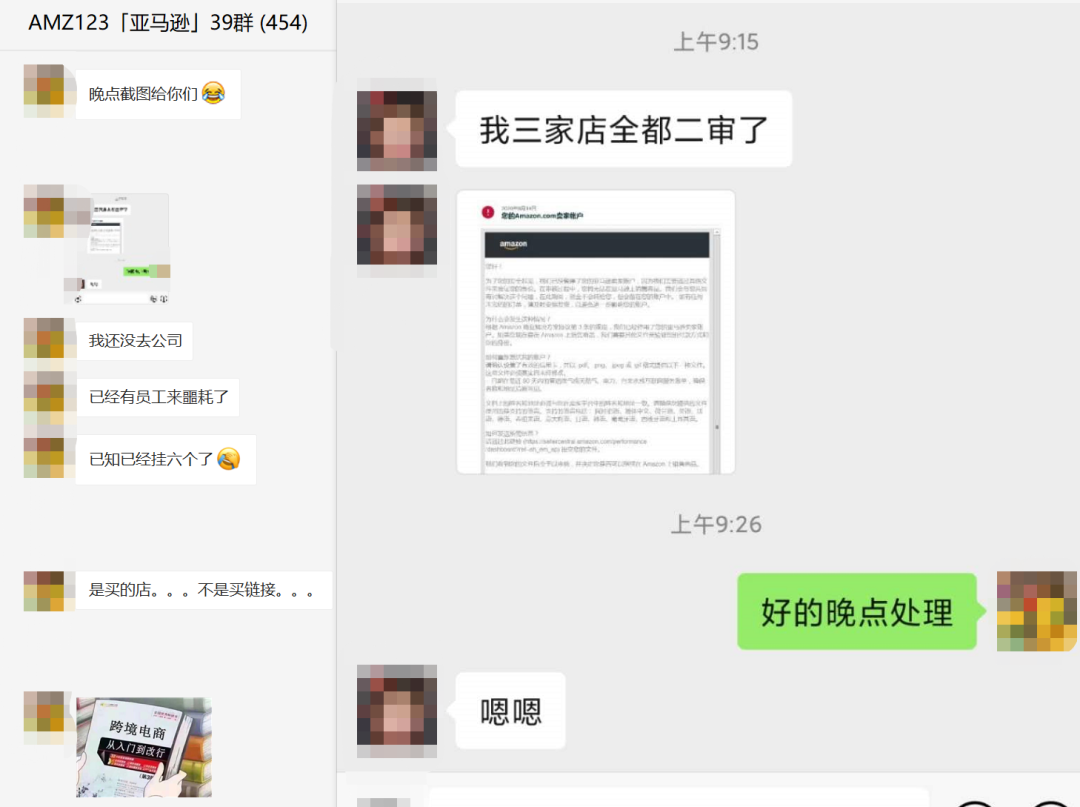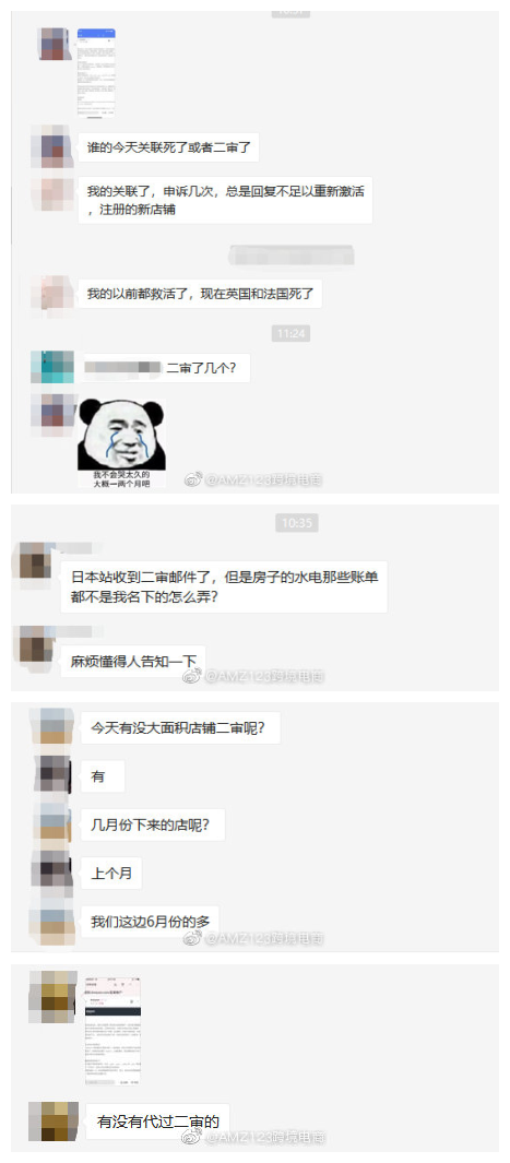 经过了解,卖家的这十个账号被封的原因是二审。同一时间,在AMZ123的各个卖家交流群内,不少卖家都表示自己的账号遭遇了二审。