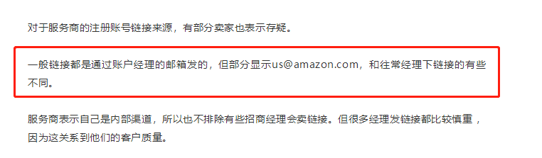 众所周知,正规渠道出来的招商经理链接都是经理的邮箱,名字+后缀 ,但部分服务商显示的是us@amazon.com