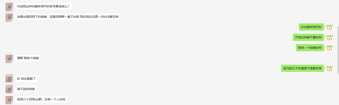 还有位卖家向卖方通的客服哭诉:自己在服务商那里买招商经理的注册链接,一个链接就是好几百 ,收到链接之后,服务商就音讯全无......