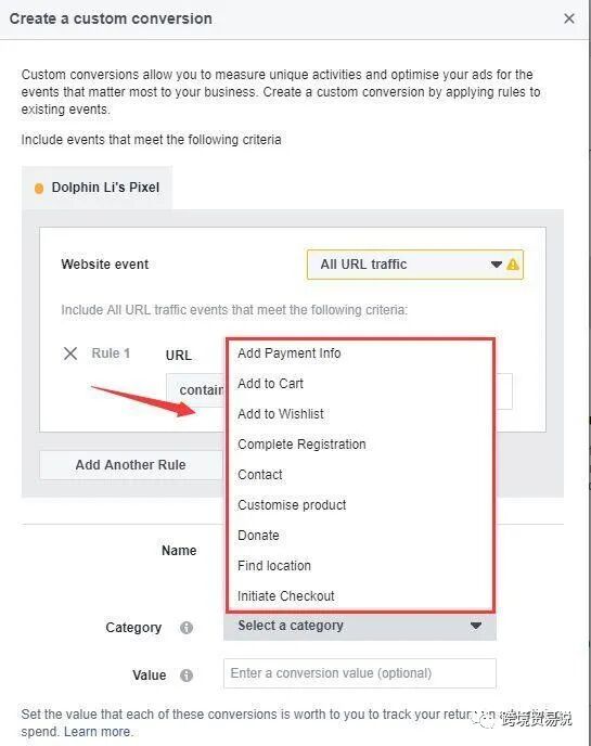 这里有很多类型,往下拉也还有,包括在我们店铺输入了付款信息,或是加入了购物车,加入了心愿单等等都可以记录。