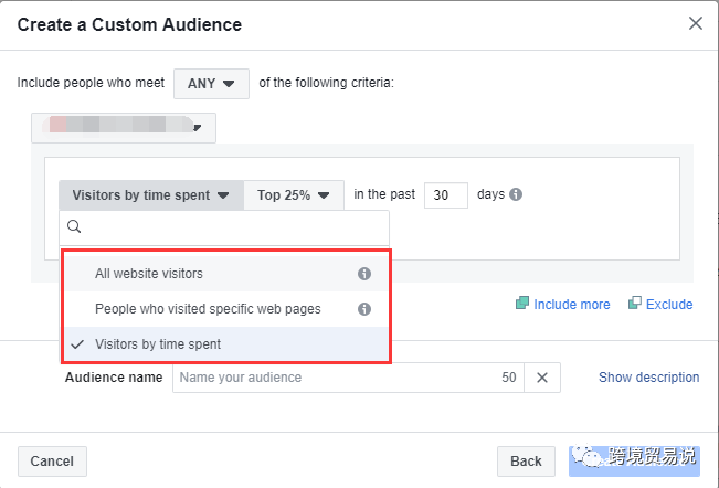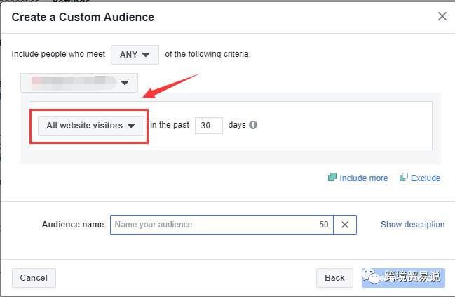 第三步,选择“create custom audience”