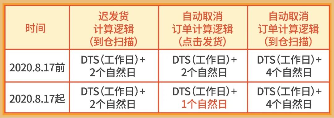 主要更新内容:若卖家DTS(工作日)+1个自然日未点击发货,订单将被自动取消。