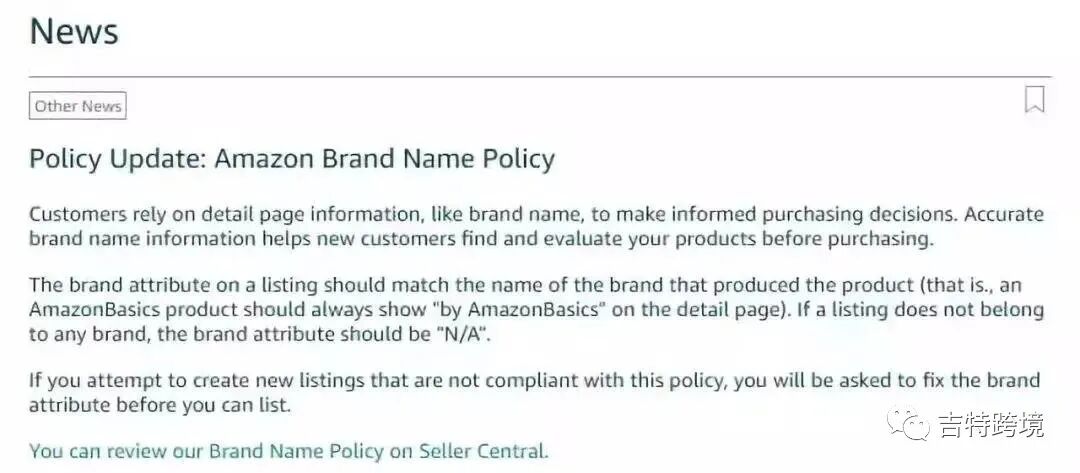 此外近日亚马逊又针对卖家的品牌问题推出了新政策: