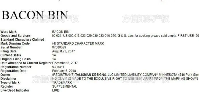 最近各位跨境卖家关心的猪油罐 Bacon Bin,在多个跨境平台 Ebay 、 Amazon 、速卖通、Wish 发起侵权投诉。在上周,估计不少卖家收到了平台的侵权冻结通知。而这一次涉及的产品依旧是热门的厨房产品。 但是除了案件中的起诉产品外,原告 ALISMAN DESIGNS, LLC 还有多款产品值得我们注意,避免再次侵权。 江湖人称其“猪油罐” Bacon Bin 。大红色的外观,胖猪的身形,可谓“实用与可爱”的化身。Bacon Bin 这个产品名不仅形象传达产品的功能的特写,同时也是美国商标哦!因此,很多卖家以为 Bacon Bin 是产品名,于是就放心使用,最后糟心中招! 注意!Bacon Bin 的侵权产品在亚马逊、速卖通、 eBay 和 Wish 等平台都有销售! (猪油罐及Bacon Bin美国商标) (亚马逊的移除链接通知) 看完了主角猪油罐,小信特意为卖家搜罗了这个品牌中一些有特色的产品和对应的看起来是产品名,其实也是注册商标的案例,供卖家们参考。说实话,这个品牌的产品对于有经验的卖家来说,应该不算陌生的。因为去年就有投诉侵权的案例,分别是: 1.糕点切边轮 2.玉米棒三件套 小信觉得比较有意思的产品当属玉米棒三件套,他们分别是 BUTTER BOY , BUTTER GIRL 和 BUTTER BABY 。这是专门为烤玉米精心设计的三套件, BUTTER BOY 和 BUTTER GIRL 是用来涂抹黄油的,一款是男孩造型 BOY;一款是女孩造型 GIRL,而 BUTTER BABY 则是玉米叉子。 (BUTTER BOY的产品和美国商标) BUTTER GIRL: (BUTTER GIRL的产品和美国商标) (黄油涂抹器的美国外观) BUTTER BABY : (BUTTER BABY的产品和美国商标) 3.樱桃去核器 Cherry Chomper (樱桃去核器-Cherry Chomper的产品和美国商标) 4.猪签罐 Ceramic Toothpick Holder 看到这款神器的那一刻,小信不得不佩服这个猪(竹)签(钱)罐,好看又好用,只能是大写的服!吃葡萄也要保持优雅! 卖家们放心“ Toothpick Holder ”不是注册商标,但这个产品的造型就要避开了,毕竟是人家先销售的产品,分分钟有可能被投诉版权侵权或者假冒产品的! (Ceramic Toothpick Holder产品) 5.玉米架 Taco Holder Somebrero 为墨西哥帽的意思,换言之, Somebrero Taco Holder 组合在一起就是说这个玉米架是墨西哥帽的造型。是一个很形象的产品描述! Somebrero 在美国21类产品中没有单独的注册商标,有效的商标是 Urban Somebrero 土风墨西哥帽的注册人是LY BERDITCHEV CORP 。 总而言之,我们最好还是不要直接使用 Somebrero Taco Holder 去描述产品,因为用了就很有可能被投诉是假冒产品! (玉米架产品VS 墨西哥帽) (Urban Somebrero- 玉米架相关产品的注册商标) 6.精美的汤勺系列 这个系列的关键词分别是:Honey Bee Measuring Spoons ;Deer Mini Spoon ;Beechwood Condiment Mini Spoons 。看着真的美呆了,有木有? (汤勺系列) 7.隔热垫 这个产品的重点是造型设计,最好不要销售同款的,真的很有可能被投诉是假冒产品,而不是商标侵权! 8.披萨包边器 PIE SHIELD BEAUTY SHOT 这款产品登记了美国版权!大家千万要注意! ( PIE SHIELD BEAUTY SHOT 美国版权及对应产品) 9.绞肉刀 Meat Chopper & Turner 这个产品拥有美国发明专利! 10.披萨切割条 Pastry Guide 这个产品同样拥有美国发明专利! 小信暂时就收集到这里,关于此次侵权事件,小信给大家总结了以下几点: 有五个既是商标又是描述产品的关键词:Bacon Bin 、 BUTTER BOY 、 BUTTER GIRL 、 BUTTER BABY 和 Cherry Chomper 猪签罐、玉米架、汤勺和隔热垫四款产品避开产品图雷同,即涉嫌假冒产品侵权的可能最高 披萨包边器、绞肉刀和披萨切割条这三个产品有对应的版权登记和专利保护