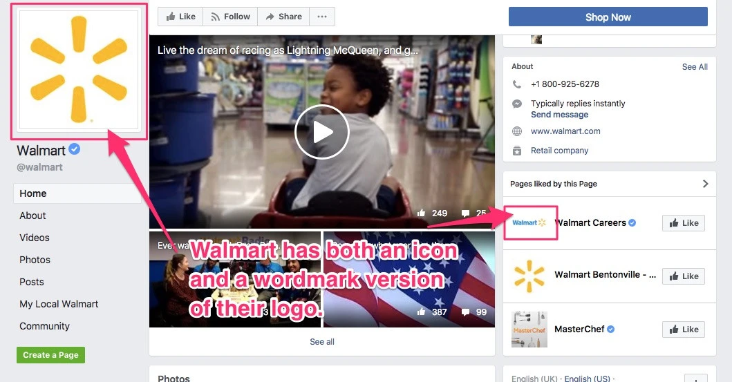 可以观察一下同时具有“火花”图标和文字标记的沃尔玛(Walmart)品牌标识。这种标识可以将图标和文字标记拆开,单独使用其中一种元素。