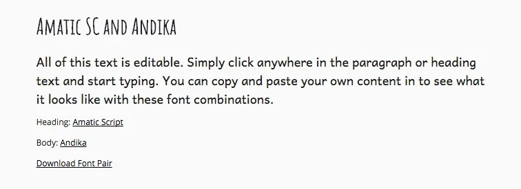 你可以使用 Font Pair来浏览多种字体,这些字体都能够进行合适的组合,必要时你还可以将他们下载下来。