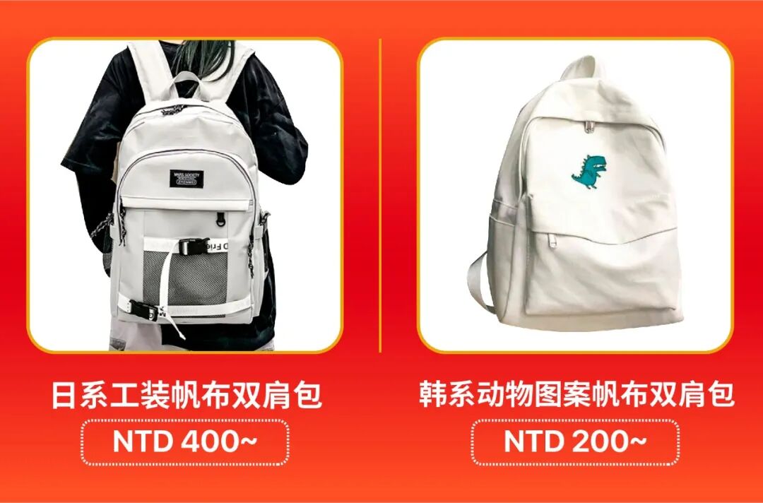 帆布背包结合了“帆布”和“背包”这两个学生必备选项,毋庸置疑的学生包首选——几乎所有的帆布后背包商品都会加上“学生”这个标签。一些大牌的帆布背包设计已经深入人心:双格+双粗肩带+上圆下方,一般足够符合主流消费者的口味。如若想要脱颖而出,则可以在设计上下些功夫:加入多个卡扣,让背包更具日式工装风;或是添加些动物图案,直接冲上韩式可爱风跑道,虏获更多少女心!