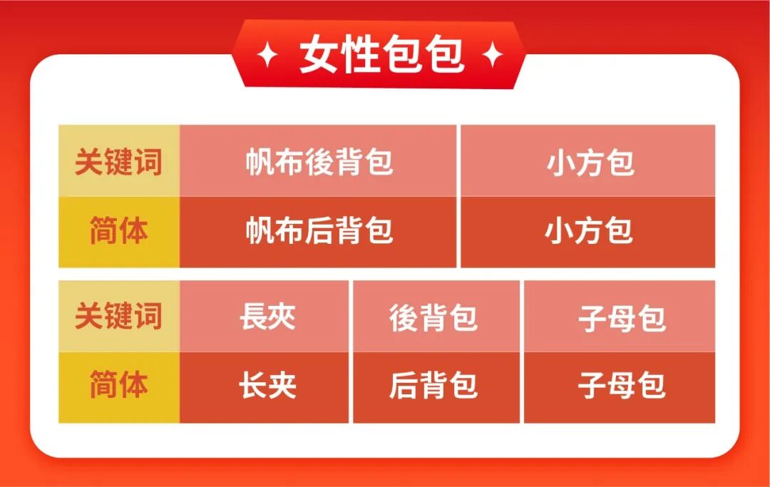 台湾市场近期适合“学生风格”的包包搜索量比较优异,像小方包这类规整形状的款式,自带清甜纯真感,十分适合年轻女孩。年轻女性的通勤时间一般较高,建议这类包包要保证有一定的容量,还要搭配足够明显且结实的锁扣,以确保上下班或是上下学时个人物品的安全。撞色风格非常适合单肩小方包,运用上淡黄或是抹茶绿等清新颜色就再合适不过了。
