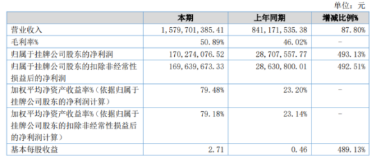 遨森电商近日发布2020年半年度报告,截止2020年6月30日,2020年上半年公司实现营业收入1,579,701,385.41元,同比增长87.80%;实现归属于上市公司股东的净利润170,274,076.52元,同比增长493.13%。