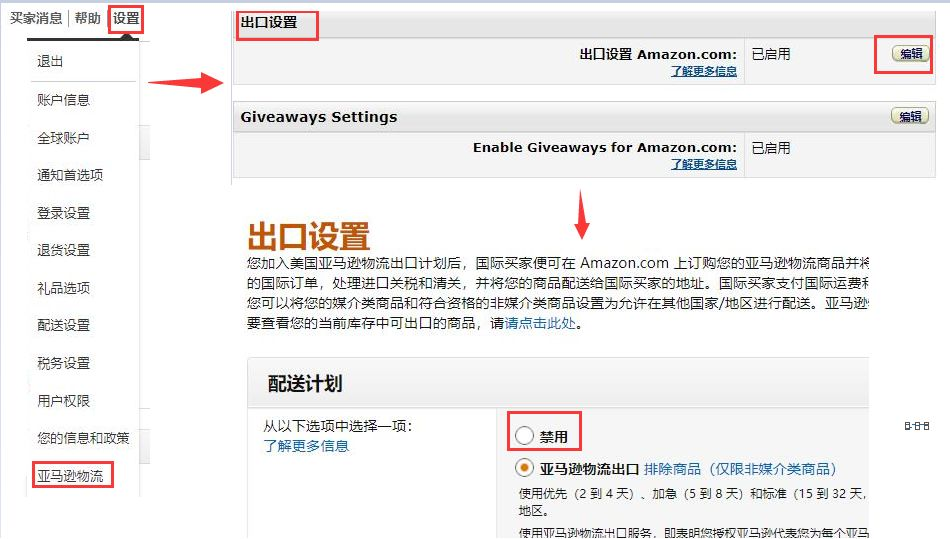 记得在3月初也有众多美国站卖家反映亚马逊要求上传法国VAT增值税号。其实这一切源于亚马逊平台有关物流的一项政策——亚马逊物流出口。这意味着,只要有产品销往法国,法国税务机关都会收取部分的增值税。所以非欧盟卖家们要避免这种事情的发生,记得要在后台”禁用”该功能。如何禁用:卖家可以点击在后台页面中右上角的“设置”——“亚马逊物流”,然后找到出口设置禁用即可。