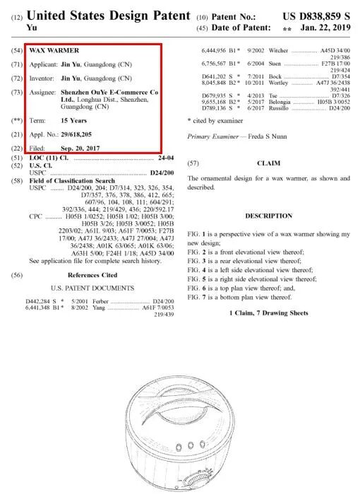 爆料卖家告诉侃妹:一款夏日畅销品Pro-Wax100融蜡脱毛机,被无良国人恶意伪造使用证明,在美国抢注商标和外观专利,然后勾结美国流氓律所,对大批量中国卖家进去地毯式侵权投诉,肆意敲诈勒索无辜的中国外贸和跨境电商从业人员!自己也是数千的受害者之一。
