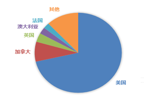 买家分布TOP5:美国、加拿大、英国、澳大利亚及法国。其中,美国占比71%,加拿大占比8%,英国占比4%,澳大利亚占比3%,法国占比2%。