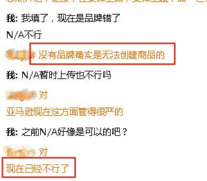 据悉,大部分的都是无品牌卖家遇到此类情况。更有卖家放出截图表示有亚马逊客服已确认:品牌名写N/A已经不行了,现在新店铺无品牌就无法上传链接。