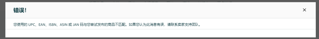 卖家B:“您使用的 UPC、EAN、ISBN、ASIN 或 JAN 码与您尝试发布的商品不匹配,这个到底啥原因?”