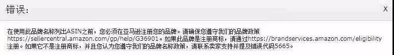 除了UPC码与商品不匹配之外,还有卖家表示无品牌的新店铺想上架listing总是遇到错误代码:5665。