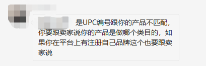 卖家A:是UPC编号跟你的产品不匹配,你要跟卖UPC的卖家说你的产品是做哪个类目的,如果你在平台上有注册自己品牌这个也要跟卖家说。