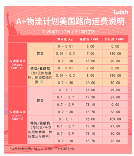 以80克的包裹为例,调价后的“安速派经济”仅需17.4元,比原来的“安速派经济”要便宜11.68%,“安速派标准”仅需23.92元,更是比某主流挂号物流渠道便宜了近7元。此外,WishPost近期上线了一项新的功能来帮助卖家处理寄到WishPost仓库、但无法投递的产品包裹。例如,若卖家的某个A+物流计划包裹中包含了A+不支持发运的产品,该包裹将被视为无法投递,Wish将按照卖家预先设置的处理方式进行退回或就地销毁。
