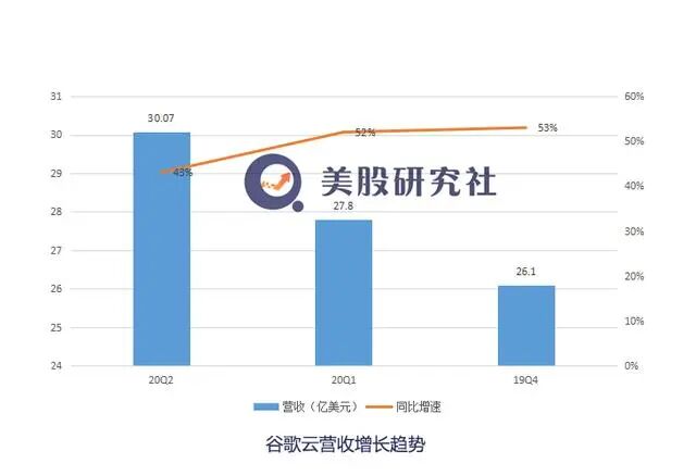 据Synergy研究数据显示,受益于疫情期间电商、流媒体娱乐、远程办公等上层需求的大幅增长拉动,这让云计算板块集体利好,这也是带动亚马逊、微软、谷歌等公司股价大涨的一个重要点。根据增速来看,谷歌云保持较好的同比增长,这个业务也被不少投资者寄予厚望。