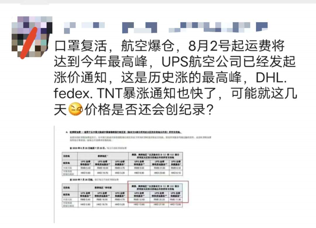 前段时间,亚马逊美国站、欧洲站、日本站相继发布限制发货的通知。随后,加拿大站也宣布限制发货。相比于限制发货数量的苦恼,更让卖家头疼的是高昂的运费以及物流派送的不给力,让卖家陷入发货与不发货的两难境地。某货代发布朋友圈称“口罩复活,航空爆仓,8月2日起运费将达到今年最高峰”,并附上了关于运费上涨的通知截图。此外,eBay也发布公告称,近期,由于航空成本的上升导致中国至多个目的地国家的运输成本均有不同程度的上涨。为了保证SpeedPAK的良好运作和按时派送,从2020年8月1日起橙联调整SpeedPAK美国、加拿大两个路向的运费价格,其他所有路向的价格保持不变。据上述消息,各大物流价格均有上涨趋势,物流涨价潮为何再次来袭?这段时间,香港的疫情情况受到了众多关注,香港单日新增确诊病例已连续多天破百。新一波疫情的反弹加剧了对空派物流的冲击,香港UPS大面积取消货机航班,导致空运快递全线暴涨。据《南华早报》今日消息,代表美国联邦快递(FedEx) 飞行员的工会呼吁该公司暂停飞中国香港的航班,联邦快递飞行员称香港对新冠疫情防控,所采取更为严格的措施会带来“不可接受的风险”,因此想让公司暂停飞往香港的航班。香港作为卖家货物的中转地,其重要性不言而喻,而如今其航班紧缺,运力严重不足,对卖家和物流商的影响也十分明显。据人民网报道,新冠肺炎疫情持续蔓延,全球已有23家航空公司倒闭。国际航空运输协会预测,2020年全球航空业将亏损843亿美元,航空需求或需5年才能恢复至疫前水平。据《时代周刊》7月29日报道,美国参议员乔·曼钦和一名工会领袖29日表示,美国邮政正在考虑关闭全国各地的邮局,这引发了人们的担忧。据悉,新冠病毒大流行进一步加重了邮政服务的财政压力,该服务在今年第一季度亏损了45亿美元。从上述报道可以看出,物流行业受疫情打击,呈现出下滑趋势。物流行业整体行情的不乐观,也可能是导致物流价格上涨的原因之一。从7月份起,就陆续传来美国爆仓的消息,不仅是FBA卖家,就连自发货卖家以及海外仓也面临爆仓严重的问题。美国FTW1、IND9两大仓库爆仓尤为严重,而卖家的货又多分配至这两个仓库,卖家排队入仓,排队上架,有的卖家甚至上架时间花了一个多月。仓库爆仓导致物流商运营成本上涨,随之而来的是物流价格的上涨。此外,美国疫情仍在持续,确诊人数已经突破450万,加之美国暴乱的影响,尾程派送尤为困难,无形中增加了快递公司的成本和压力。面对爆仓,卖家无可奈何,但更让人气愤的是卖家已经发货的货件还被亚马逊取消了!卖方通卖家交流群内有卖家表示今天货件都被取消了,吓得多个卖家赶紧查看货件,结果一位卖家表示自己13-20号创的货件,已经发货结果今天被取消,客服表示无法恢复!随后发现是该卖家所建数量太多,有同样情况的卖家们要多关注货件状态。原本限制发货数量就已经让卖家的订单捉襟见肘,新一波的物流涨价更是雪上加霜。就连服务商也开始同情卖家:物流费最近一天一个样...很多客户看到自配送爆单本来还挺开心的~一看物流费都尴尬了...发出去就是个亏字...