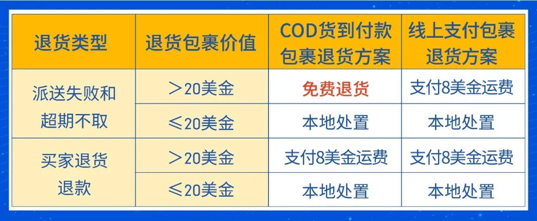 Shopee跨境退货服务涵盖COD货到付款包裹及线上支付包裹,包裹价值高于20美金都可享受跨境退货服务(小于或等于20美金的包裹会进行本地处置)。