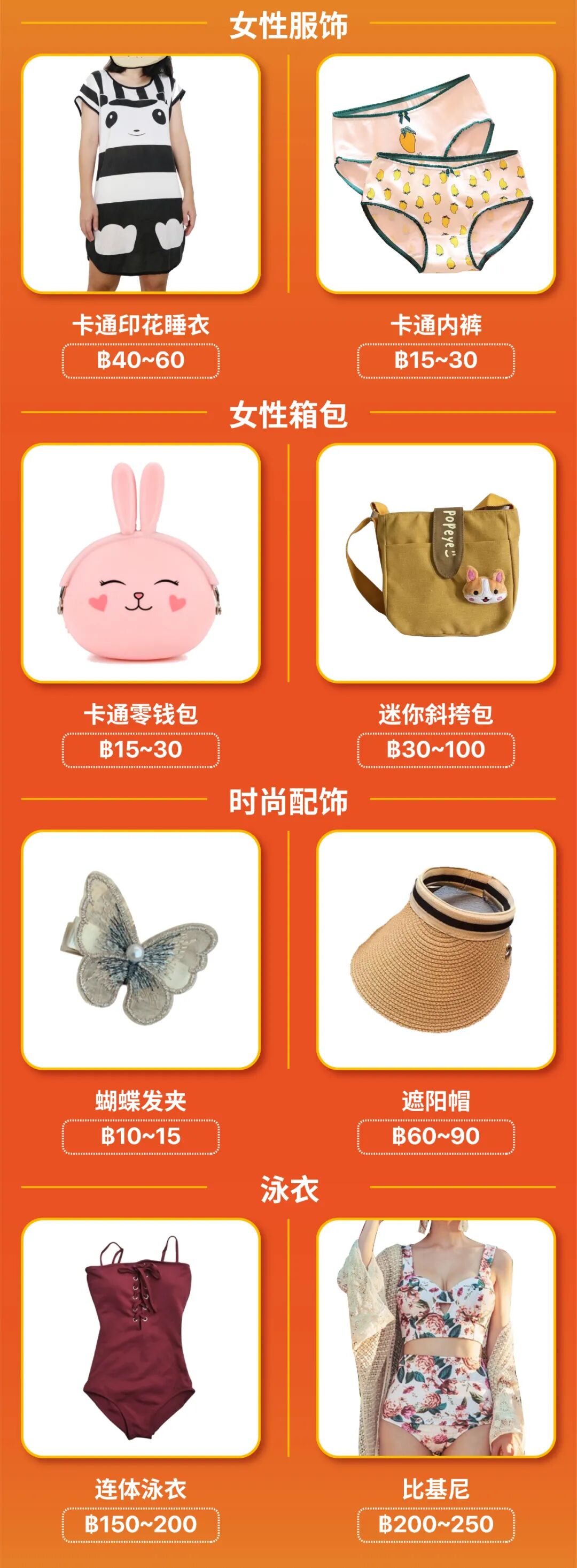 可爱或卡通风的商品,如今在泰国站点女性时尚相关类目中炙手可热,如销量较好的睡衣、内衣、包包或是时尚配饰,都会带有一定的卡通或是小动物元素。随着盛夏的到来以及疫情的逐渐消退,当地选择出游的人越来越多,预计夏季户外相关商品会持续高热度,我们鼓励卖家尝试上新更多的泳装商品。