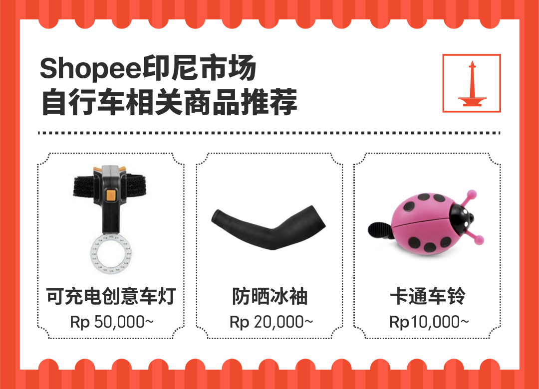 随着疫情缓和,居家室内运动已有向户外运动转变的趋势。当地群众倾向于使用自行车作为通勤工具,以避免搭乘公共交通工具。Shopee印尼市场自行车类目增长尤为突出,自行车配件、骑行相关服饰单量在过去一个月内增长80%。