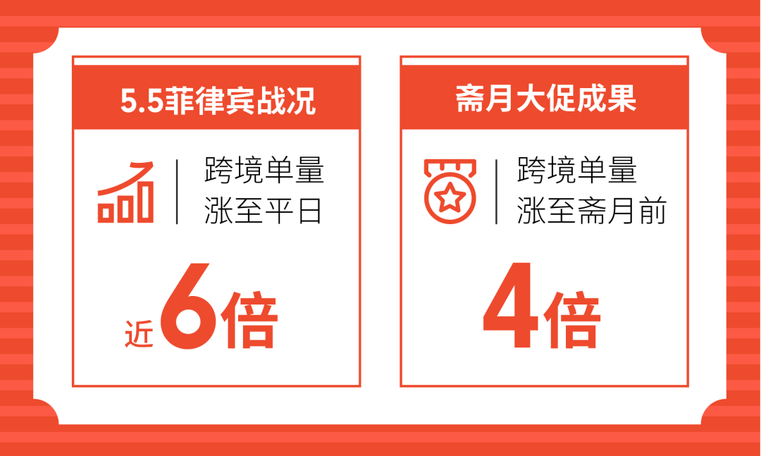 Shopee跨境在大促中彰显出逆势增长韧性:菲律宾5.5大促当日跨境单量暴涨至平日近6倍。在“斋月大促”高峰日,印尼站点跨境单量增至斋月前4倍。