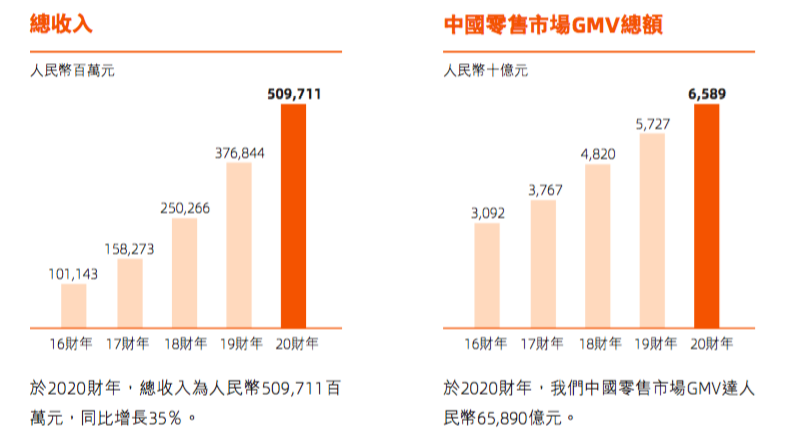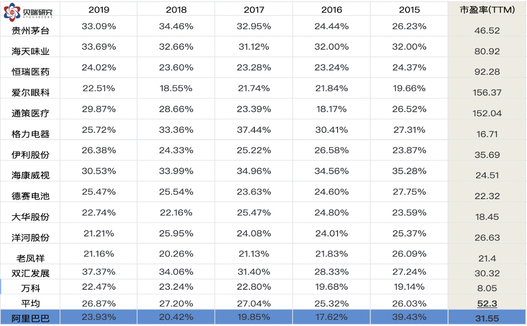如果我问你,2020年成长股和价值股谁的表现好?你肯定说:这还用问,不管A股还是美股,成长股都大幅跑赢价值股。美股的FAANG,A股的科技医药,那都是一骑绝乘,银行地产开着特斯拉也追不上。 你说的一点都没错。 如果我再问你,过去十年成长股和价值股谁的表现好?你大概会想几分钟,然后回答:应该还是成长股吧。 那么,你又答对了。下图是2010年4月1日到2020年3月31日罗素价值股指数和成长股指数的对比。过去十年内罗素200成长指数达到257.9%的收益率,而同期罗素200价值指数跑输成长指数74.1%。同时我们也能看出不管是成长指数还是价值指数,Large Cap的表现都优于Small Cap。 (图片来源于罗素网站) 再来看A股,我这里把截止到2020年7月23日的十年内创业板指数和上证50做了个对比,也可以很明显的看出同期成长风格的创业板指数大幅跑赢价值风格的上证50。 (数据来源:雅虎财经,作者制图) 那么,你是否就可以下结论说,不管是中期投资还是长期投资,成长股的回报都优于价值股呢? 我们还是来看看罗素公司的数据。当我们把投资周期拉长到41年,价值股和成长股的年化回报率则几乎没有差别,前者11.4%,后者11.1%。如果我们把投资周期再拉长,使劲拉,使劲拉,想象一下90年前你美国的太爷爷买了价值股,你太姥爷买了成长股,然后你爷爷你爸都没动,现在该你继承这两笔财产了。那么,谁的遗产更值钱呢? (图片来源于罗素网站) 从罗素公司这张对比图我们可以看出,当我们把投资周期拉长到90年,价值股的年化回报率是超过成长股的。 所以,很多人认为的成长股回报率高于价值股,其实不完全正确,在不同的时间周期内,他们的表现差别很大,而原因就可以归结于金融学里的“均值回归”这个概念。 现在,直击灵魂的问题来了。价值和成长这两种属性,必须二选一吗?有没有股票既具有高成长性,又有低估值的品格? 当然有。而且是大家特别熟悉的:阿里巴巴。 本文将用横向对比和纵向比较的方式,从价值分析和业务分析两方面来说明阿里巴巴是兼具价值和成长属性的股票。全文大约七千字,大概阅读时间40分钟。 说明:由于阿里巴巴的财务年度是从头年4月1日到次年3月31日,为方便对比,如无特殊说明,本文将阿里2020年财年(2019年4月1日-2020年3月31日)看成是2019年,并以此类推。并且,除了亚马逊之外,本文中所说的每股,并非每普通股,而是指每ADS,每股收益(EPS)也是指的ADS per share。 “亚里京多”相对估值和财务分析 价值分析这个章节我们用相对估值和财务比率分析两部分来解决一个基础却核心的问题,即它的价值属性:阿里巴巴的股票现在是贵还是便宜? A. 相对估值分析 很多人都知道巴菲特做投资最喜欢的一个指标就是ROE,即净资产回报率。一般来说,ROE在15%-20%之间就是优秀公司了,如果ROE超过20%就是杰出公司,如果ROE可以连续十年超过20%,那么这支股票很有可能进了巴菲特的菜篮子了。看ROE这个指标要从两个维度来看,ROE高说明企业给股东的回报率高,ROE稳定则说明企业有稳定的经营能力。 A股市场历史不长,优质公司也很稀缺,据统计ROE连续十年超过20%的只有12支。我这里把标准稍微放低一点,选取了14支连续五年ROE超过20%的股票(如果其中一年非常接近20%,也放水列入了),我们可以看到连续五年ROE超过20%的股票大部分股价都已经不便宜了,平均市盈率达到52.30,更不要说成长性较高的医药股。相比之下,阿里巴巴的市盈率只有31.55倍,可谓便宜有好货的代表。 但是,本文要横向对比的不是这些公司,而是行业竞争对手,也就是我上期文章里说的“亚里京多”,即亚马逊(AMZN),京东(JD)和拼多多(PDD)。 首先我们从相对估值的角度来对比一下这四家公司的数据: 从上表清楚的看出,按市盈率,市净率和市现率来做相对估值的话,阿里都是四家电商公司中最便宜的。而市销率是四家公司差异最大的数据。为什么呢?根本的原因还在于业务模式的差异。四家电商中阿里和拼多多属于平台型公司,而京东和亚马逊绝大部分是自营业务。这种模式上的差别就导致确认收入的方式不同,京东和亚马逊可以把自营卖出去的商品都计入收入,而阿里和拼多多计入收入的是平台收取的服务费和广告费。所以,我们会看到京东和亚马逊的营收数字很大,对应的市销率就很低,但他们利润率偏低,因为自营模式是重资产模式,要建立物流和仓储系统。后面我们分析财务数据时还会提到业务模式差别带来的影响。 B. 财务比率分析 财务比率的对比与分析,横向同期对比当然重要,但是趋势的分析更重要。下面我将用EPS、净资产收益率、毛利率、净利率、资产负债率和营收现金比来对比这四家公司。 先来看看这四家公司近三年的ROE: