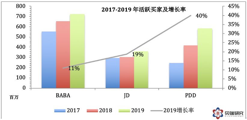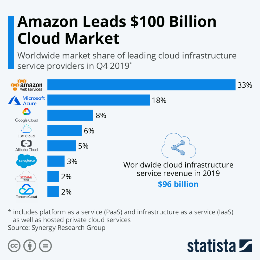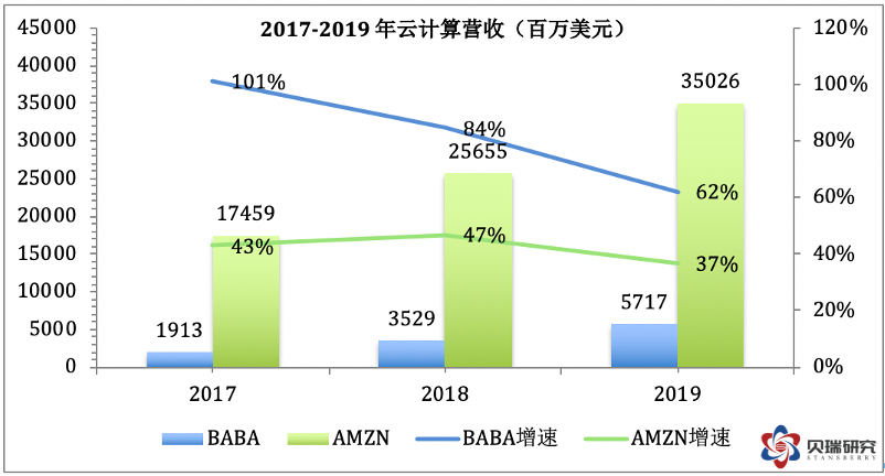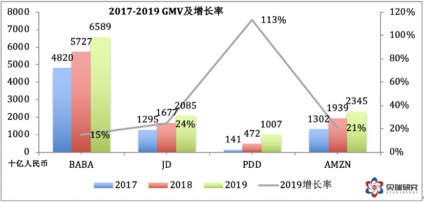 数字媒体与娱乐业务占总营收比为5%,但是同比增长只有12%,是各业务分部中增长速度最慢的部分。而创新业务虽然同比增长42%,但是仍然只占总营收1%的比例。由于这两块业务要么占比太小,要么增长不够强劲,很难构成未来整体业务增长的驱动力,所以后面我不会再展开分析这两部分。 A. 核心商业 阿里的核心商业是个庞大的帝国,包含中国零售和批发,国际零售和批发,物流,本地服务和其他。其中,以大家最熟悉的淘宝和天猫为代表的中国零售业务是重中之重。阿里在过去一个财年中GMV突破一万亿美元(7.053万亿元人民币)大关,中国零售的GMV达到6.589万亿人民币。 (数据来源于各公司年报,作者制表) (数据说明:阿里的GMV数据采用的是中国零售业务的GMV,而非阿里全部GMV) 对比四家电商,阿里的GMV总量超过其他三家的GMV总和,至少在目前来前,GMV全球老大的位子是未来几年内任何一家都无法企及的。但是,我们也要看到,从市场占有率的角度,阿里的市占率是在不断下降的,存量的市占率下降还不太明显,新增GMV的市占率则下滑明显。当然,发展到了这个阶段,不论是新增用户还是新增活跃用户的增速都会放缓,从而使GMV的增速放缓,所以我们也可以看到四家中阿里的GMV新增速度是最慢的。增速超过一倍的拼多多仍然处于快速发展阶段,新增活跃用户和GMV都是四家中最高的,但是如果分析拼多多的季度数据或者月数据,可以看到增速已经连续十几个月下滑,其圈地运动也快接近尾声了。 GMV的增长两大驱动力分别是活跃买家的增长以及每个活跃买家的人均消费金额。由于笔者没有在亚马逊年报里找到活跃买家的数据,也没在其他渠道找到特别准确的数字,所以接下来我只对比阿里、京东和拼多多的数据,这些数据全部来自他们的年报。 (数据说明:阿里的年活跃买家数据采用的是中国零售业务的活跃买家,而非阿里全部消费者) 根据国家统计局的数据,2019年中国65岁以上的老人为1.76亿,14岁以下儿童为2.49亿。以中国的14亿总人口计算,假设以上人群为不适龄用户,剩下的有效人口基数为9.75亿,再粗略扣除疾病、经济状况、基础设施等条件造成的原因,笔者估计中国总体有效的活跃买家数应该在8-9亿之间。2019年阿里的年活跃买家已经达到7.26亿,同比上一年度新增7200万人,同比增长11%。虽然这个增长率远远落后于拼多多的增速,但是已经相当接近于天花板了。以后的新增买家数增速应该只会更慢,甚至停止。 从存量和增量的活跃买家数来看,京东也是值得担心的。目前存量活跃买家数已经远远落后于拼多多,而以拼多多主打下沉市场的策略,能继续挖掘新增用户的潜力还很大,而京东面临的困境则要严峻很多。 (数据来源于各公司年报,作者制表) 再来看看人均消费额的情况,阿里近三年来人均消费额稳定在9000元左右,增速非常缓慢。京东2019年达到5761元,增速与阿里接近。而拼多多的人均消费额过去两年的增速分别达到95%和53%,根据中国电商市场的整体增速和历史经验,这个数据还有非常大的上升空间。 从上面GMV、活跃买家数、人均消费额这三组数据来看,阿里电商老大的位子短时间内不可能打破,虽然增速放缓,但是由于阿里几乎形成闭环的生态系统将来还是能在内部各个业务板块之间导流,其他平台要赶上阿里几乎已经不可能。 由于面临增速放缓的问题,在核心商业部分,阿里未来的发展重心会放在本地服务板块,这一块是最具有市场空间的业务。2018年阿里联合蚂蚁金服以95亿美元完成对饿了吗的全资收购。阿里CEO张勇曾说收购饿了吗是阿里有史以来最重要的投资。注意,这里没有“之一”哦,可见饿了吗在阿里的战略地位。 饿了吗作为市场老二,目前距离老大美团的差距还很大,而且呈现逐年扩大的趋势。根据易观的数据,到2020年6月,美团的月活用户数是1.37亿,饿了吗是8900万。不管是美团还是饿了吗,现在的定位都不再是外卖,而是本地生活,或叫同城零售,或叫身边经济。而这一块的玩家,除了这两个巨头,还有京东、苏宁、达达等。饿了吗的主要优势在于用户增量有支付宝导流,而来自阿里系内部口碑、盒马、菜鸟、高德等的协同效应也是其他平台不具备的,打价格战也有雄厚的资金实力。由于本篇主要对比的是京东、拼多多和亚马逊,这里不过多深入到饿了吗和美团之战。 总之一点,饿了吗以现在的市占率为基础,在用户数、业务扩展性等方面还存在很大的扩张空间,将来阿里核心商业的增速将主要来自于这一块。 B. 阿里云 先来看一下全球云计算的几大玩家: (图片来源于www.statista.com) 亚马逊当之无愧是云巨头中的老大,阿里巴巴排在第五。而在有些季度,阿里云超过IBM云排在第四。但是在后疫情时代,我觉得作全球对比已经意义不大了,中国和美国的脱钩日益严重,对于云业务来说,估计西方国家和中国的市场会互不渗透,市场份额的主要变化会发生在中国以外的亚洲市场。根据Gartner的数据,在亚太市场中, 亚马逊IaaS的市场份额仅为17.5%,阿里云位居第一。2019年阿里云在亚太市场份额由26%上升至28%。在中国市场,阿里云则是遥遥领先的老大。 (图片来源于canalys) 下面我们来对比一下AWS和阿里云的营收和增速: